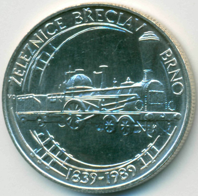 Памятная монета, приуроченная к 150-летию постройки железной дороги между городами Бржецлава и Брно.