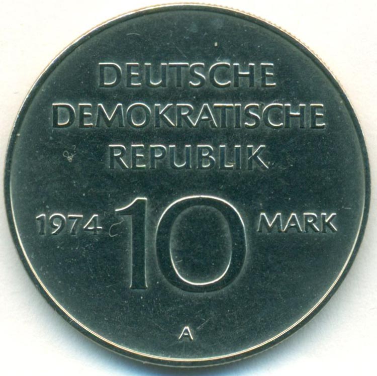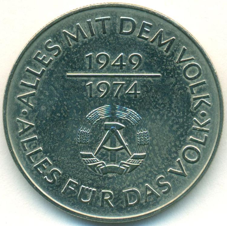 Юбилейная монета, посвященная 25-й годовщине образования Германской Демократической Республики.