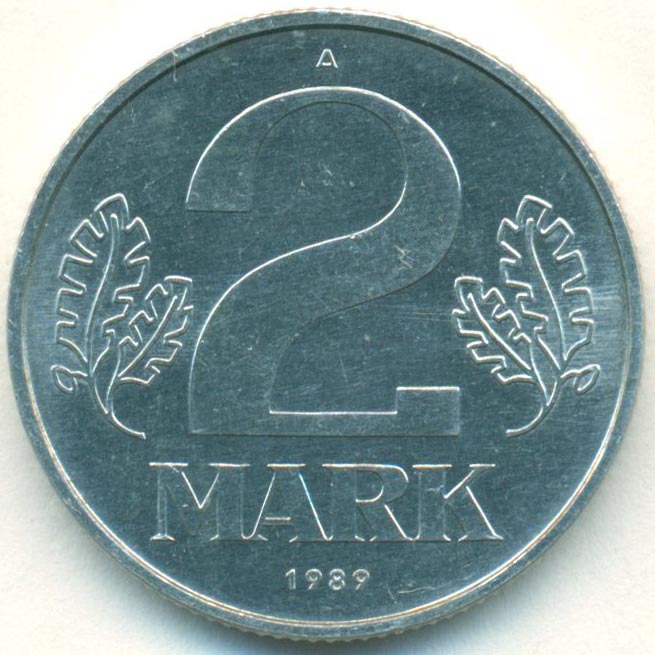 ГДР, 2 марки 1989 год (UNC)