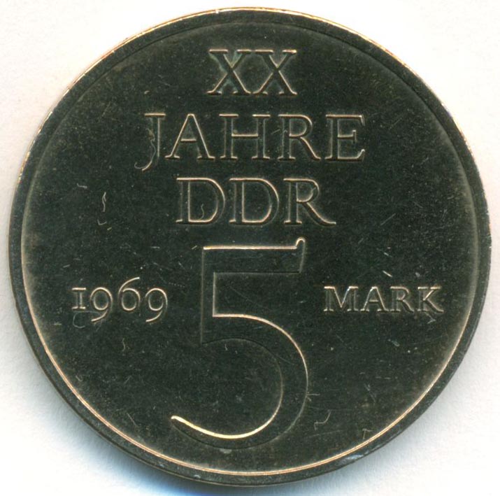 Юбилейная монета, посвященная 20-й годовщине образования Германской Демократической Республики.
