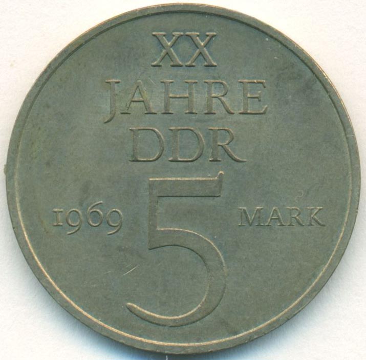 Юбилейная монета, посвященная 20-й годовщине образования Германской Демократической Республики.