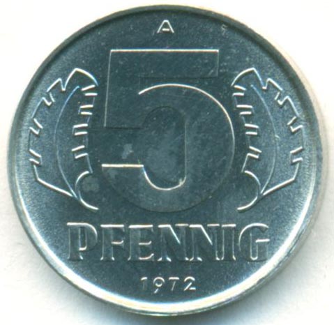 ГДР, 5 пфеннигов 1972 год (UNC)