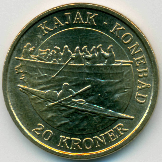 Памятная монета из серии "Корабли Дании". Каяк Умиак.