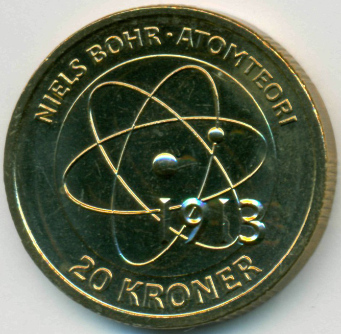 Памятная монета из серии "Выдающиеся ученые Дании". Нильс Бор (1885-1962) - датский физик-теоретик, создатель первой квантовой теории атома в 1913 году.