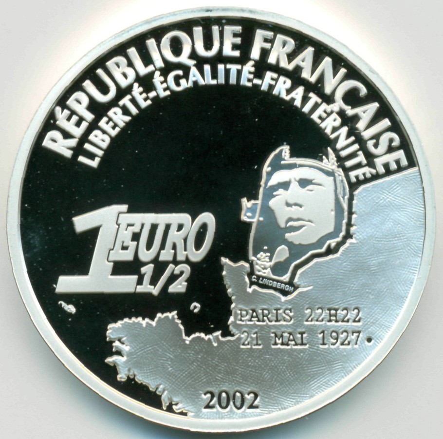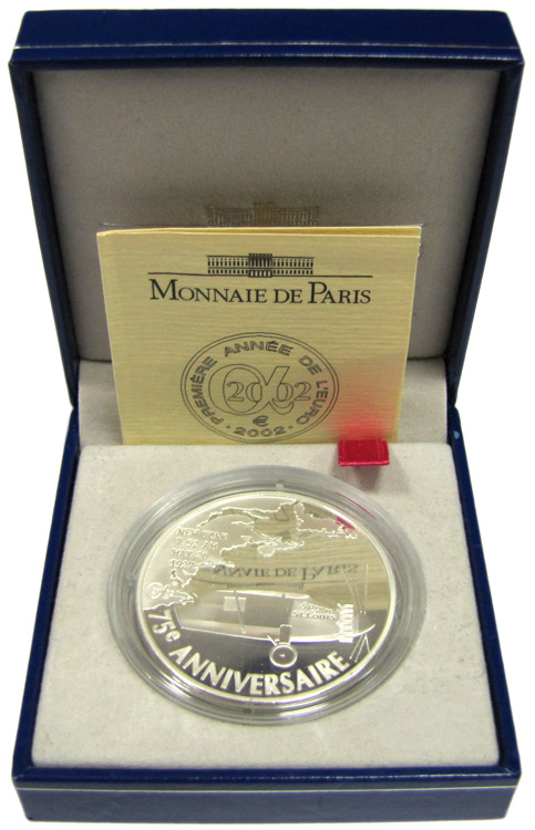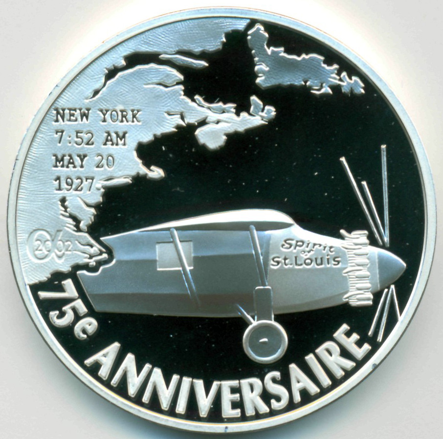 Памятная монета, приуроченная к 75-й годовщине перелету через Атлантический океан, совершенный Чарльзом Линдбергом в одиночку (20 - 21 мая 1927 года), по маршруту Нью-Йорк - Париж.