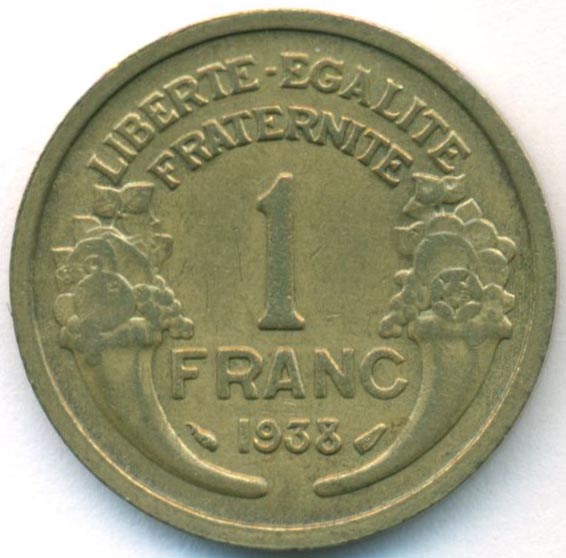 Франция, 1 франк 1938 год