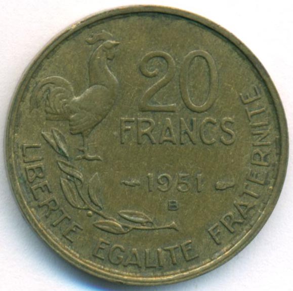 Франция, 20 франков 1951 год B