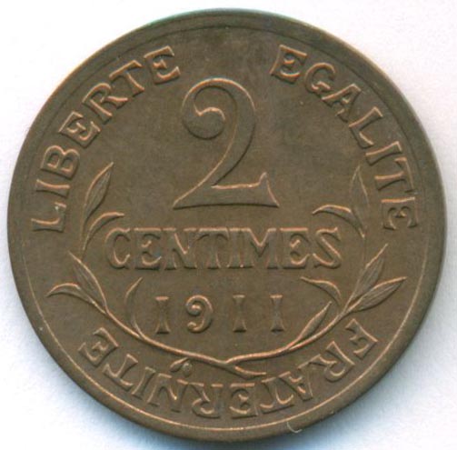 Франция, 2 сантима 1911 год (UNC)