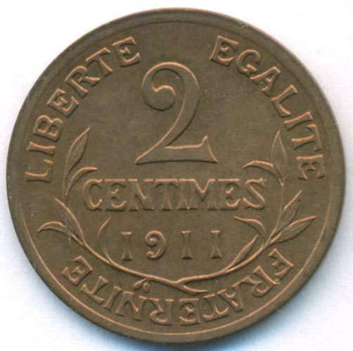 Франция, 2 сантима 1911 год (UNC)