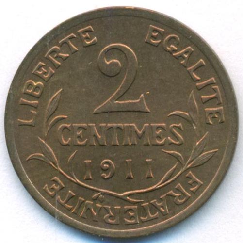 Франция, 2 сантима 1911 год (UNC)