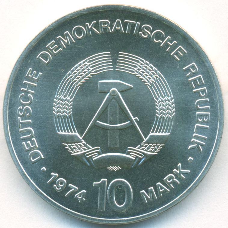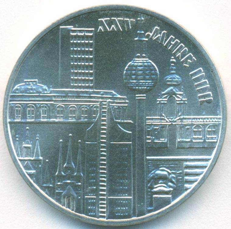 Юбилейная монета, посвященная 25-й годовщине образования Германской Демократической Республики.