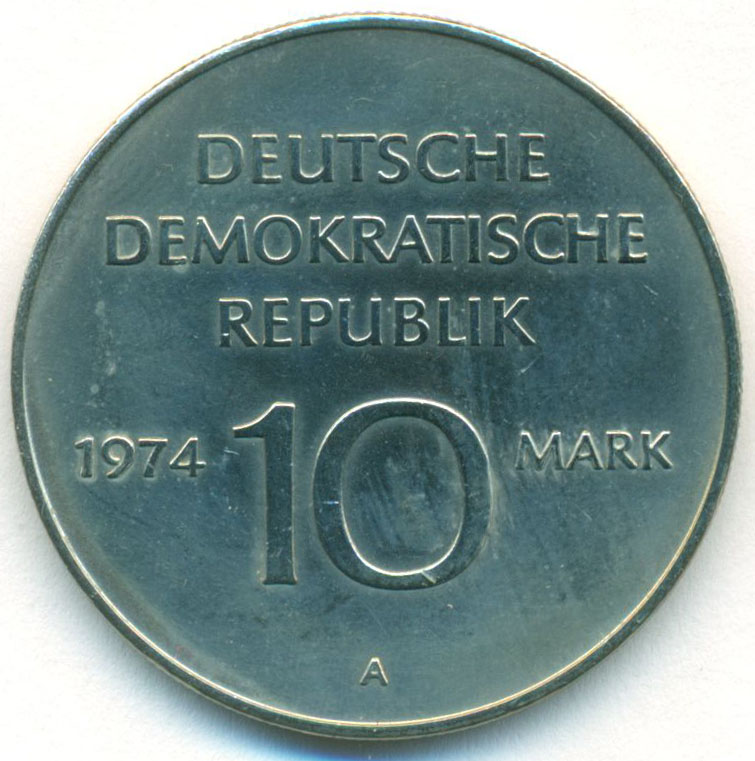 Юбилейная монета, посвященная 25-й годовщине образования Германской Демократической Республики.