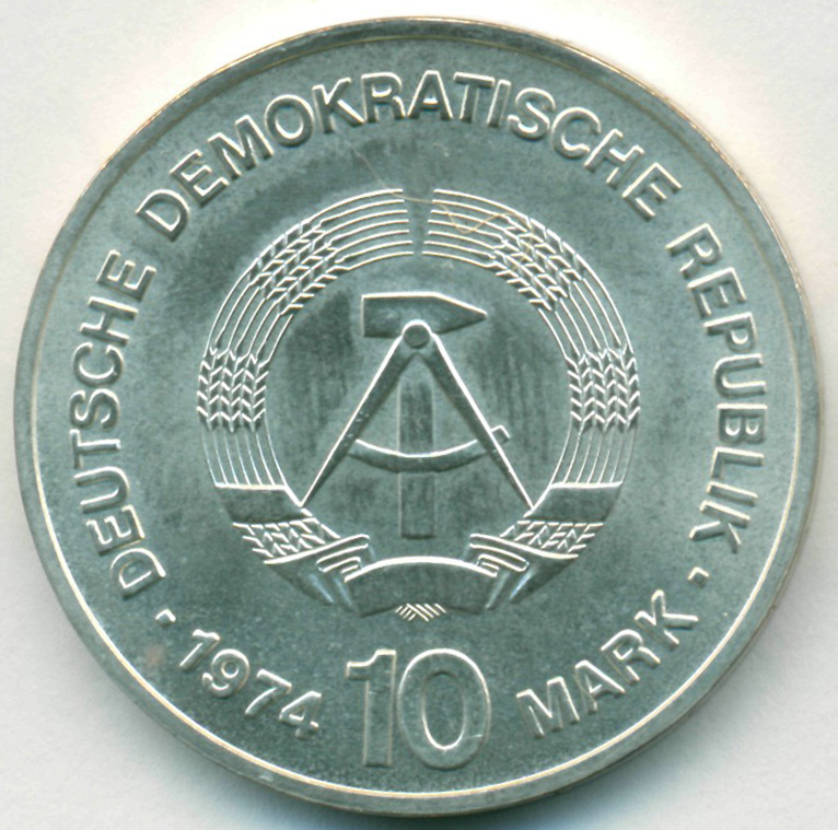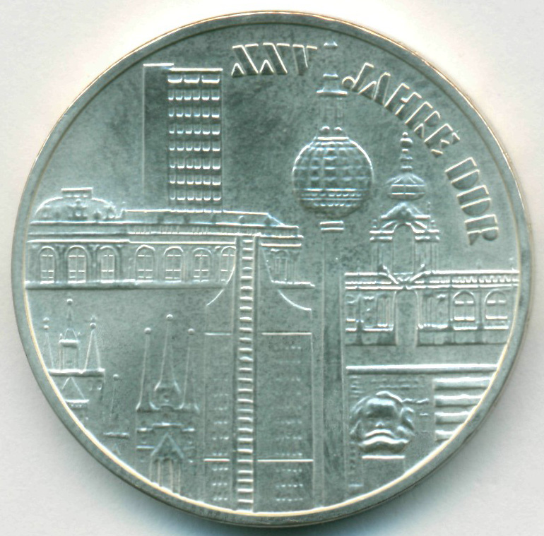 Юбилейная монета, посвященная 25-й годовщине образования Германской Демократической Республики.