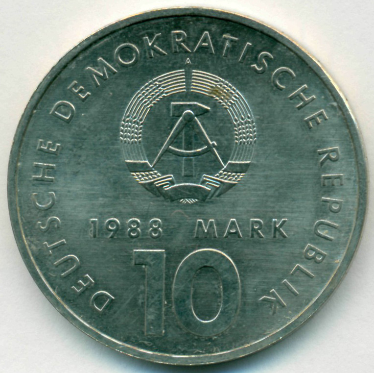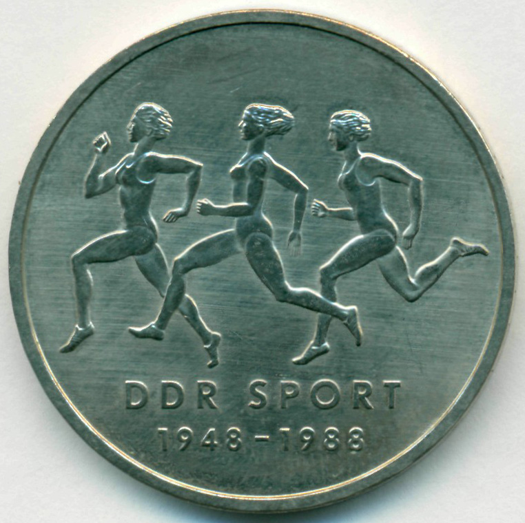 Памятная монета, посвященная 40-й годовщине Союзу физкультуры и спорта ГДР.
