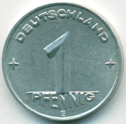 ГДР, 1 пфенниг 1949 год Е (AU)