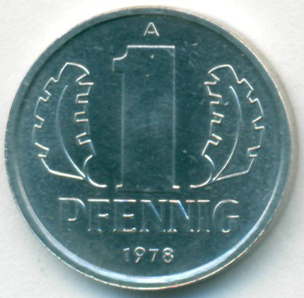 ГДР, 1 пфенниг 1978 год (UNC)