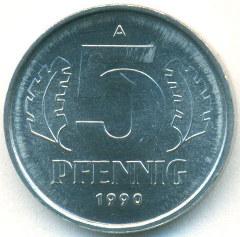 ГДР, 5 пфеннигов 1990 год (UNC)