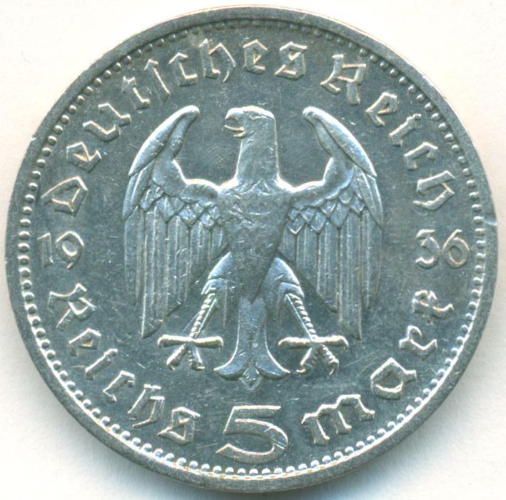 Третий Рейх, 5 рейхсмарок 1936 год G