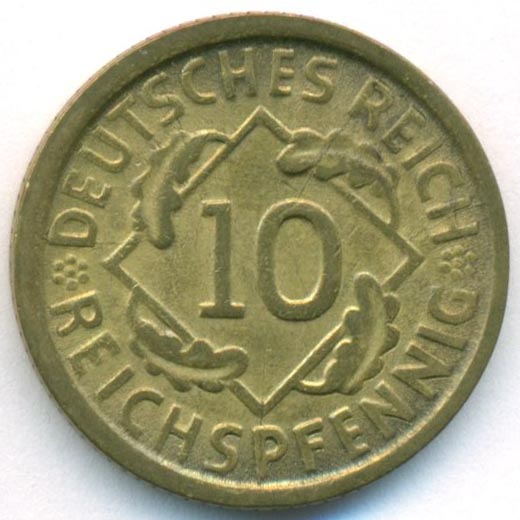 Веймарская республика, 10 рейхспфеннигов 1925 год D