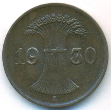Веймарская республика, 1 рейхспфенниг 1930 год A