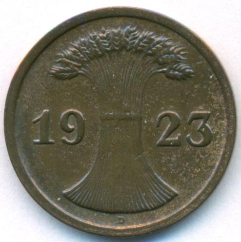 Веймарская республика, 2 рентенпфеннига 1923 год D