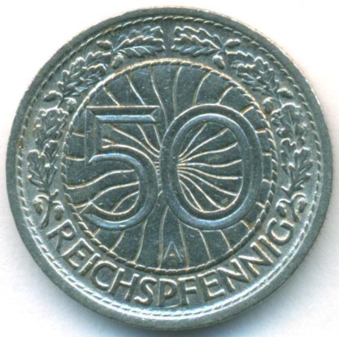 • Номинал: 50 рейхспфеннигов
