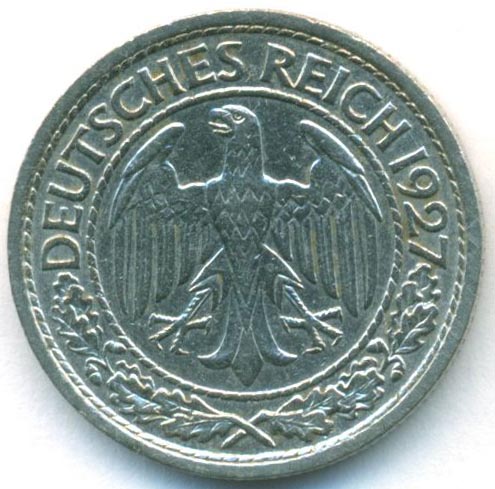 Веймарская республика, 50 рейхспфеннигов 1927 год A