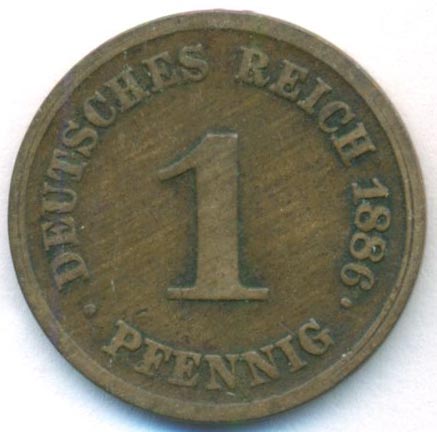 Германия, 1 пфенниг 1886 год F