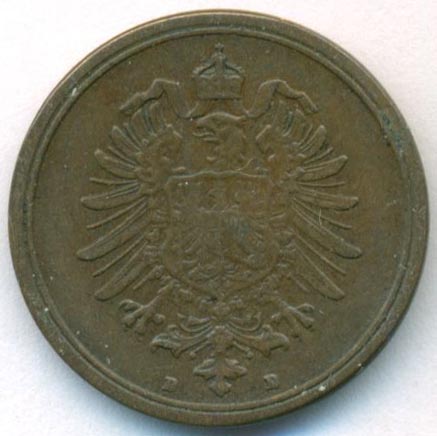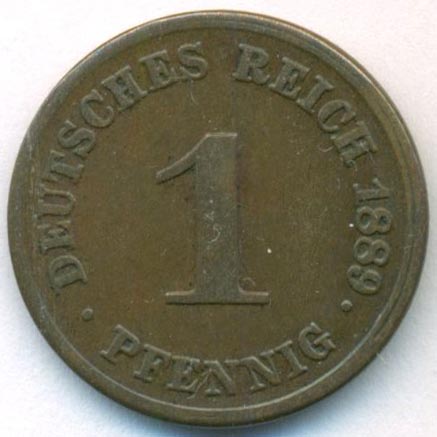 Германия, 1 пфенниг 1889 год D
