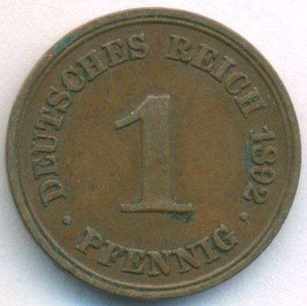 Германия, 1 пфенниг 1892 год A