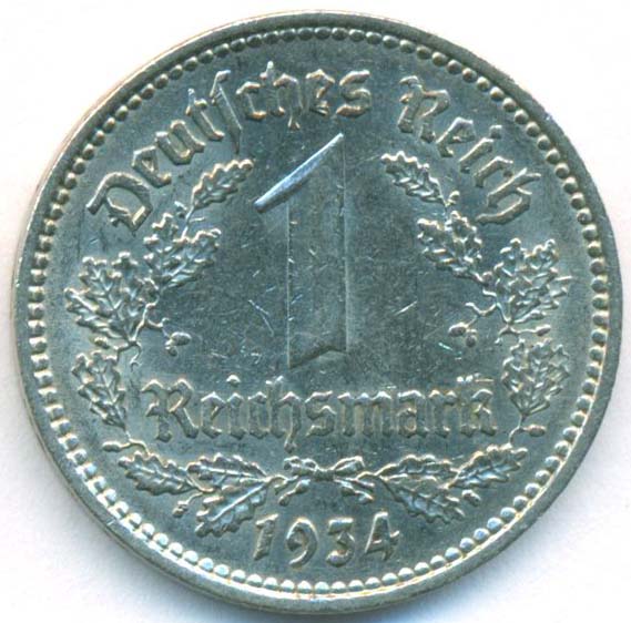 Третий Рейх, 1 рейхсмарка 1934 год A