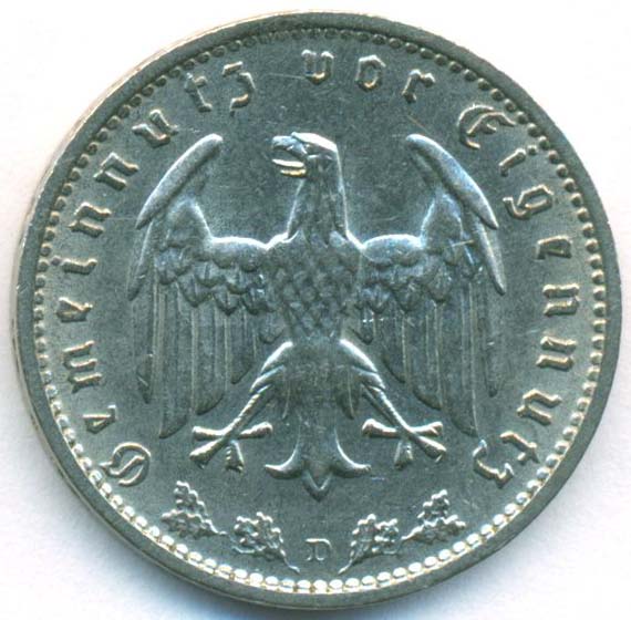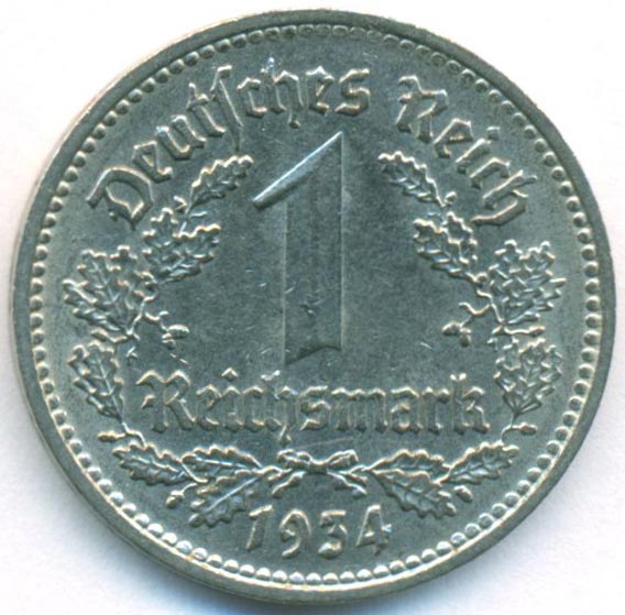 Третий Рейх, 1 рейхсмарка 1934 год D