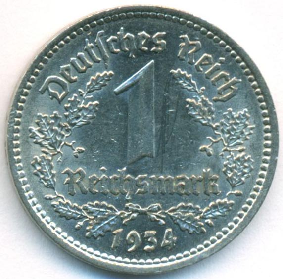 Третий Рейх, 1 рейхсмарка 1934 год A