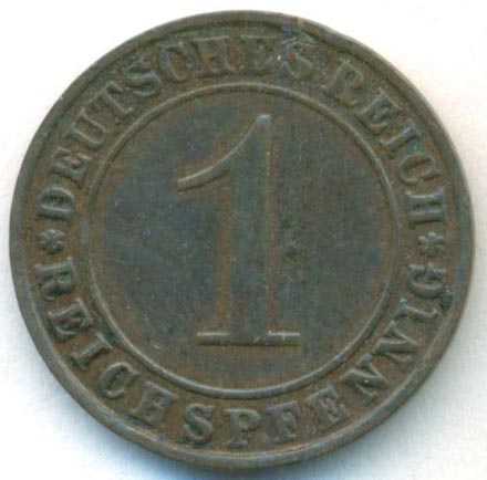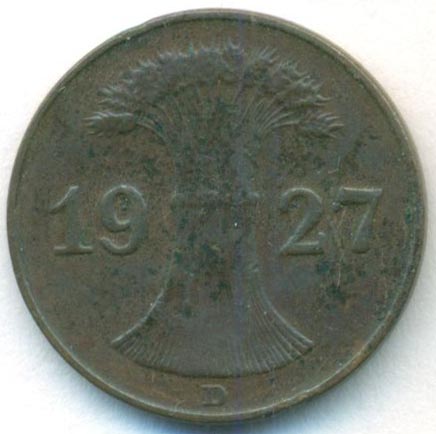 Веймарская республика, 1 рейхспфенниг 1927 год D