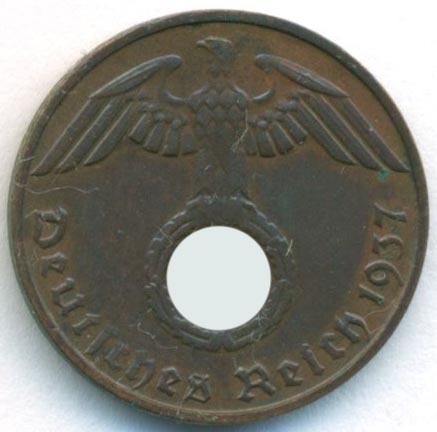 Третий рейх, 1 рейхспфенниг 1937 год D