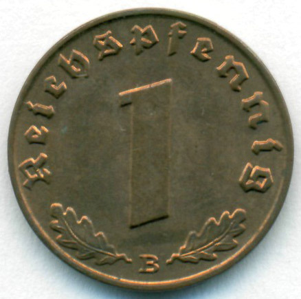Третий рейх, 1 рейхспфенниг 1939 год B (UNC)