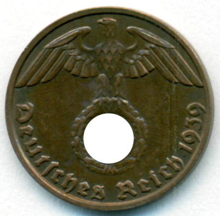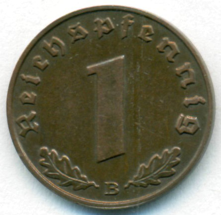 Третий рейх, 1 рейхспфенниг 1939 год B (AU)