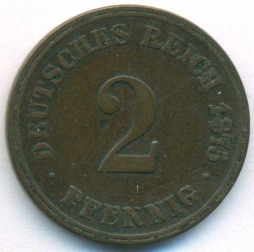 Германия, 2 пфеннига 1875 год J