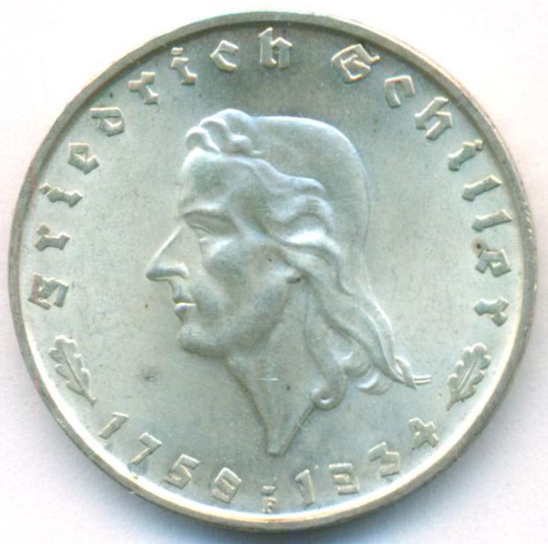 Памятая монета, приуроченная к 175-летию со дня рождения немецкого поэта и философа Фридриха Шиллера.