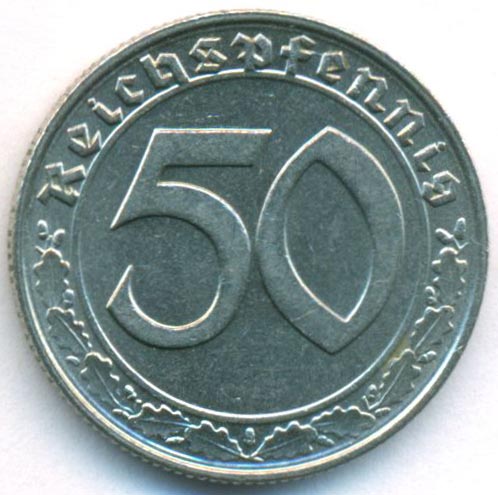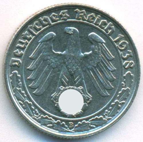 Третий Рейх, 50 рейхспфеннигов 1938 год B (AU)