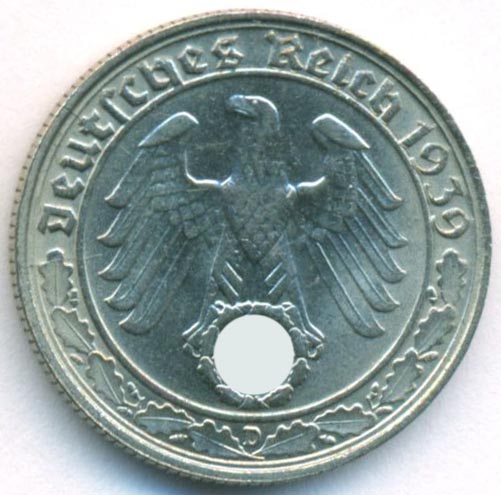 Третий Рейх, 50 рейхспфеннигов 1939 год D (AU)