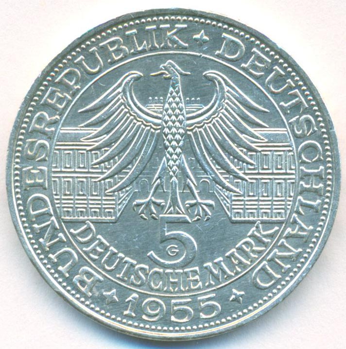 ФРГ, 5 марок 1955 год (AU)