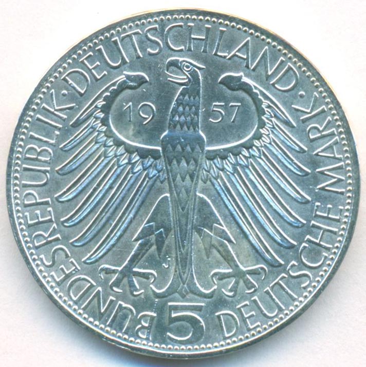 ФРГ, 5 марок 1957 год (UNC)