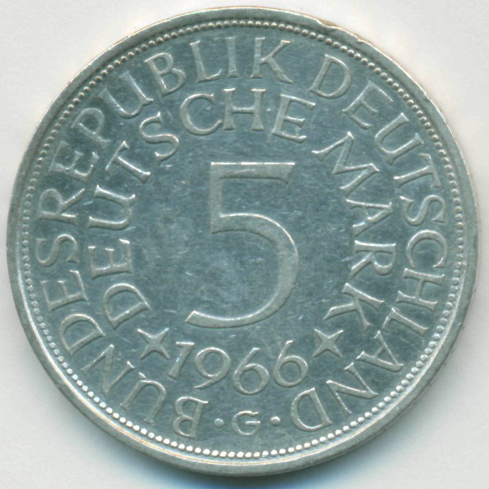 ФРГ, 5 марок 1966 год G