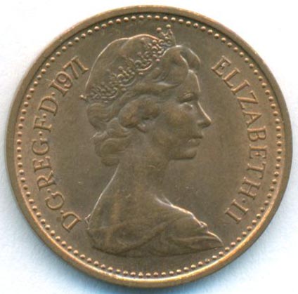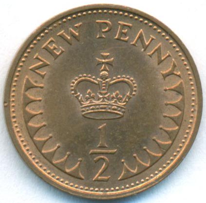 Великобритания, 1/2 нового пенни 1971 год (UNC)