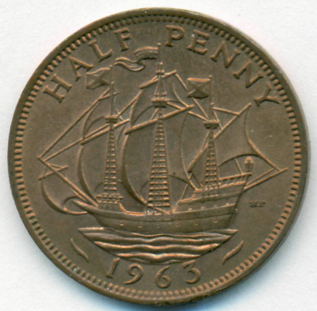 Великобритания, 1/2 пенни 1963 год (UNC)