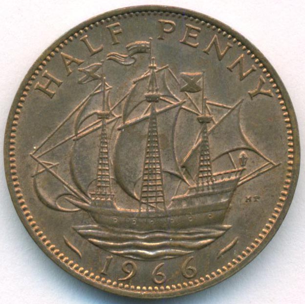 Великобритания, 1/2 пенни 1966 год (UNC)