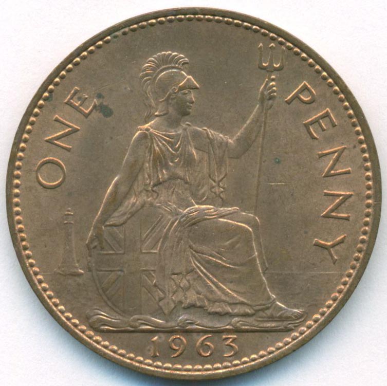 Великобритания, 1 пенни 1963 год (UNC)