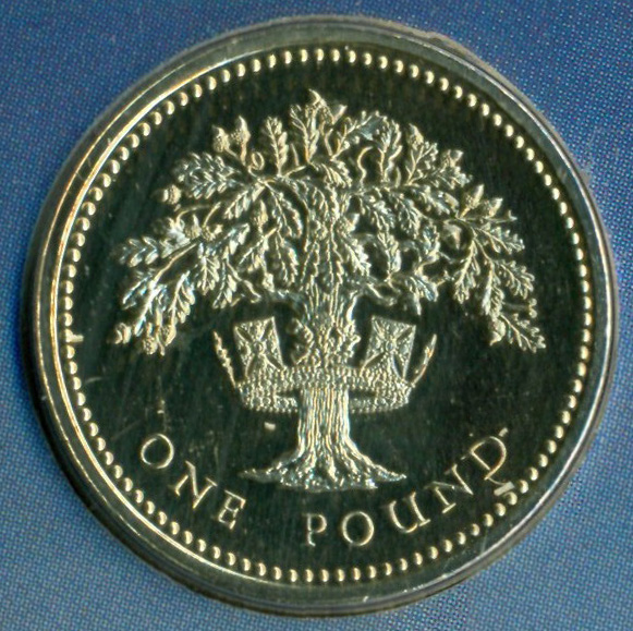 Коллекционная монета. Дуб - геральдическое растение Англии.