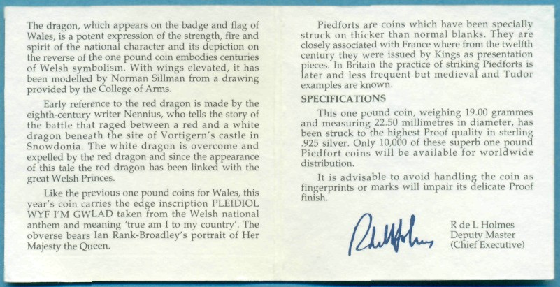 Коллекционная монета. Уэльский дракон.